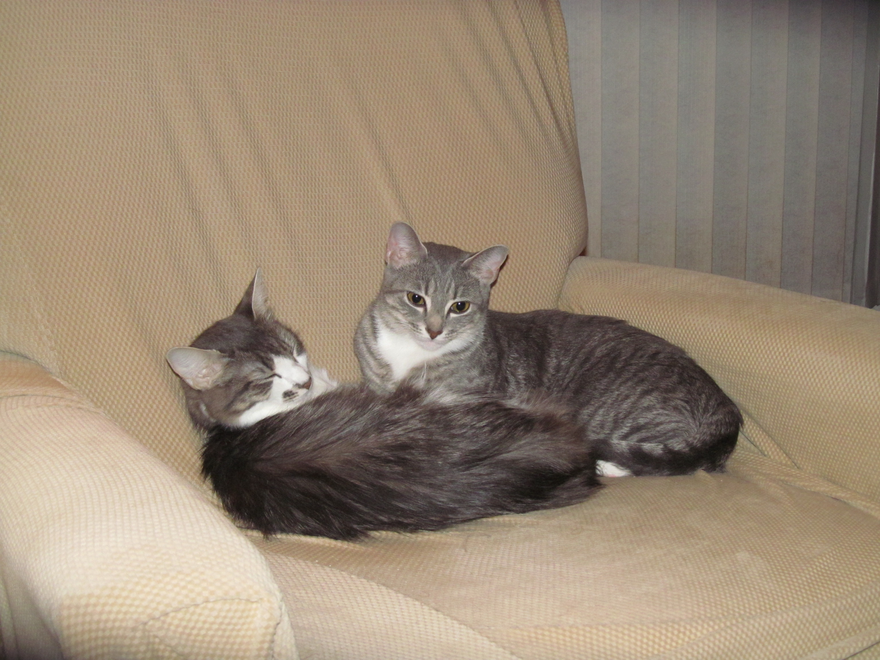 That visit to the vet was significant also in that Lovey was very angry at the vet and the vet technicians. One of the techs said that she had scruffed Lovey when she was trying to get a blood sample, and that might have done it. Or perhaps there was another reason. We wonder now whether there could have been anything hurting inside at that time. I guess we’ll never know for sure. When Lovey was returned to the exam room, Lily was right there watching. When she saw Lovey turn to the vet and hiss, she immediately did likewise. The vet told me to watch out, as they might fight each other. I told the doctor that these hisses were directed at her. Then when a tech held Lovey so the vet could administer a shot, Lovey screamed at the tech. Lily came running around the table and jumped up, fully intending to go after the tech. Fortunately I stopped her, but just as Lovey had stuck up for Lily, she was going to reciprocate! Can you see why I love these cats so much?